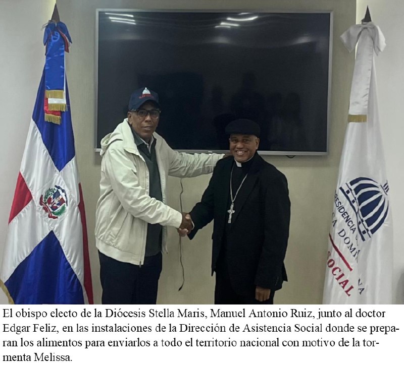 Santo Domingo Este. El obispo electo de la Diócesis Stella Maris de los municipios Santo Domingo Este, Boca Chica y Guerra, monseñor Manuel Antonio Ruiz de la Rosa, giró este viernes una visita a las instalaciones de la Dirección de Asistencia Social y Alimentación Comunitaria, donde fue recibido por su director general, doctor Edgar Feliz, donde tocaron temas de interés a propósito del paso de la tormenta Melissa por el país.